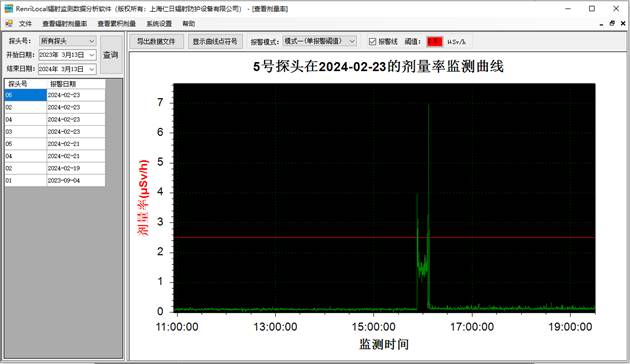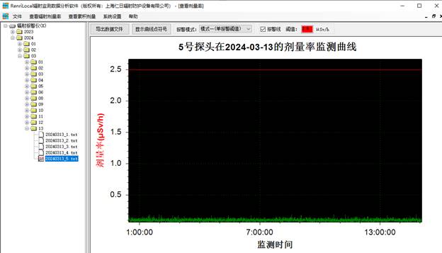 6、數(shù)據(jù)分析:免費提供功能強(qiáng)大的RenLocal輻射監(jiān)測數(shù)據(jù)分析軟件,可通過曲線和棒狀圖的形式分析歷史劑量率和累積劑量數(shù)據(jù)以及實時查詢報警數(shù)據(jù)與統(tǒng)計分析等